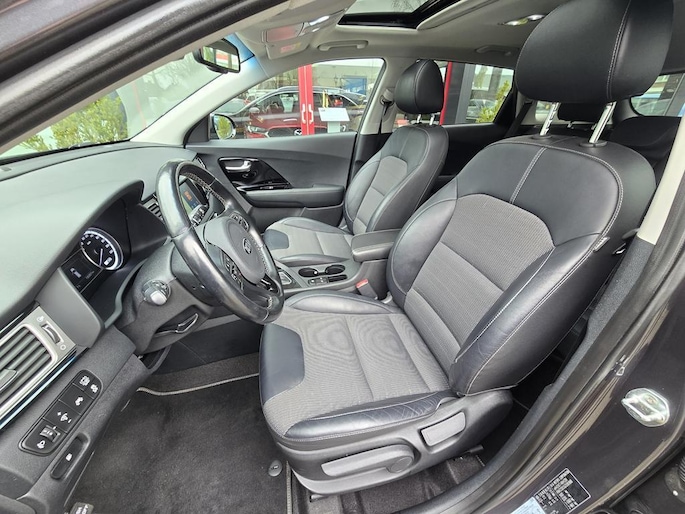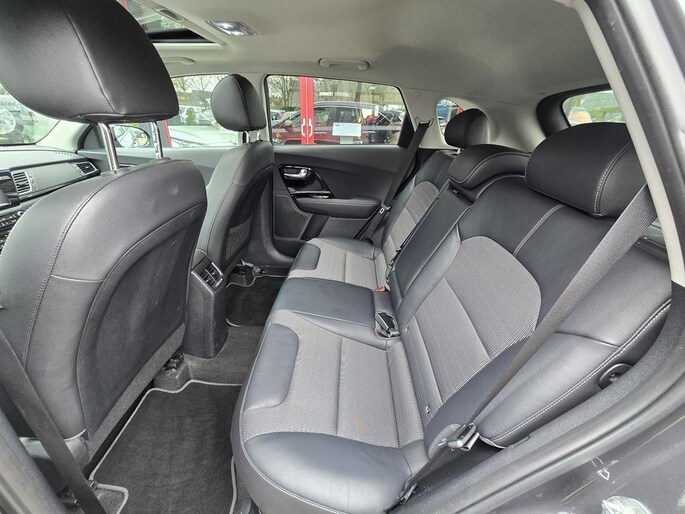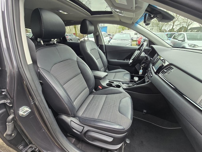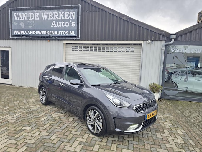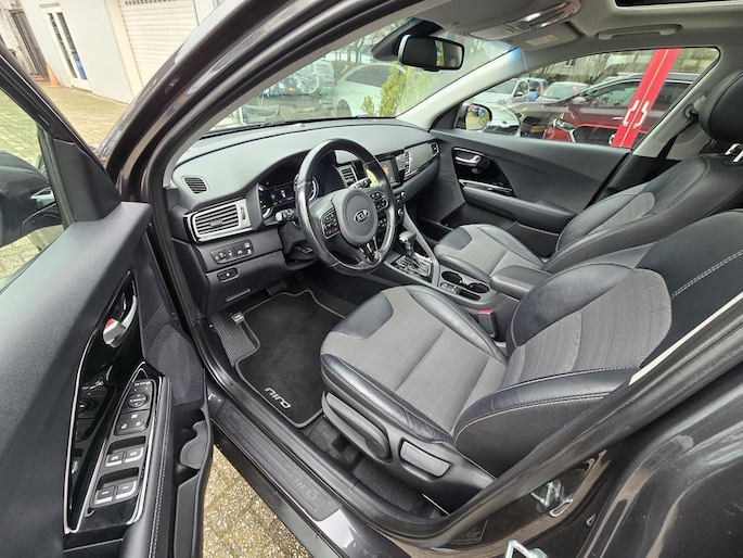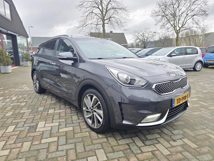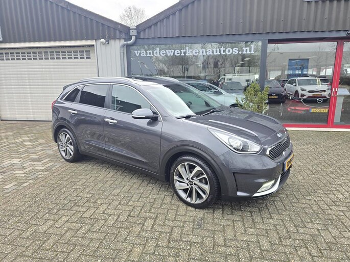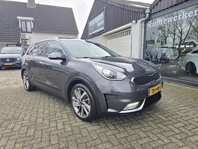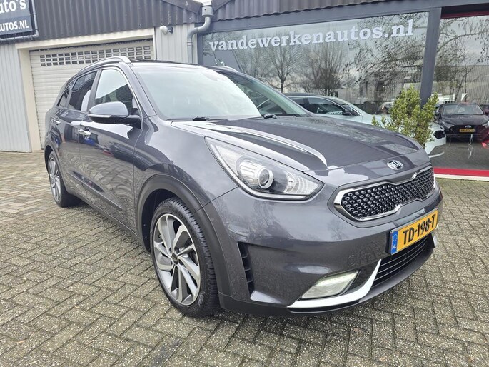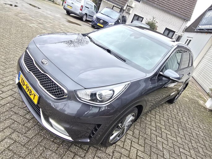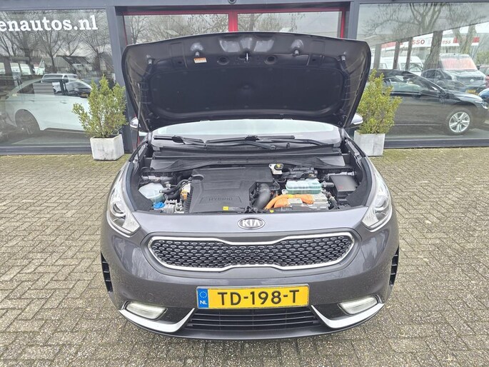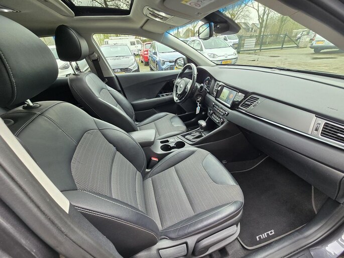 Keurig nette Kia Niro Hybrid automaat in de rijk uitgeruste Design Edition uitvoering met o,a: Clima, Elektrisch pakket, Navigatiesysteem, Achteruitrijcamera, Parkeersensoren achter, Bluetooth telefoon voorbereiding, Half lederen interieur, Cruise controle, Aux en Usb aansluiting, Isofix, Rijstrooksensor, Middenarmsteun, Automatisch inklapbare buitenspiegels, Android auto, Apple CarPlay, Dakrails, Electrisch bedienbaar Schuif-Kanteldak, Metallic lak, 18 inch LM velgen origineel Kia, Automatische verlichting en wissen, Privacy glas, Trekhaak, enz enz.