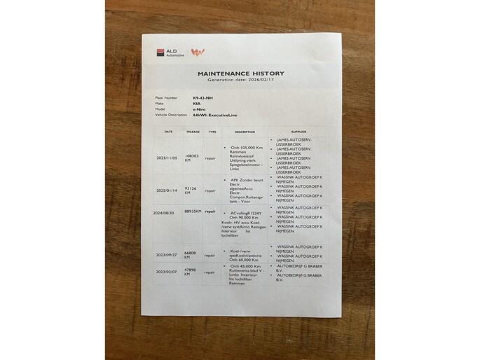 logische Nationale Auto Pas, onderhoudshistorie
