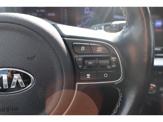 Soepel inparkeren gaat gemakkelijker dan u verwacht dankzij de achteruitrijcamera. Met adaptive cruise control houdt deze auto automatisch afstand tot uw voorligger. U kunt het audiosysteem met DAB-ontvangst en het navigatiesysteem bedienen met de knoppen op het stuur. In een auto als deze kunt u niet zonder automatische airconditioning, zodat de temperatuur altijd goed is. In deze Kia kunt u zich concentreren op het verkeer, terwijl de auto de omgeving voor u in de gaten houdt. Een automatisch inschakelbare verlichting zorgt dat de verlichting aangaat als het donkerder wordt - in tunnels bijvoorbeeld - en de regensensor schakelt de ruitenwissers in als het nodig is. U hoeft er niets aan te doen. En deze auto heeft ook keyless entry, automatisch dimmende binnenspiegel, bagage afdekhoes en lederen versnellingspook als standaard uitrusting.