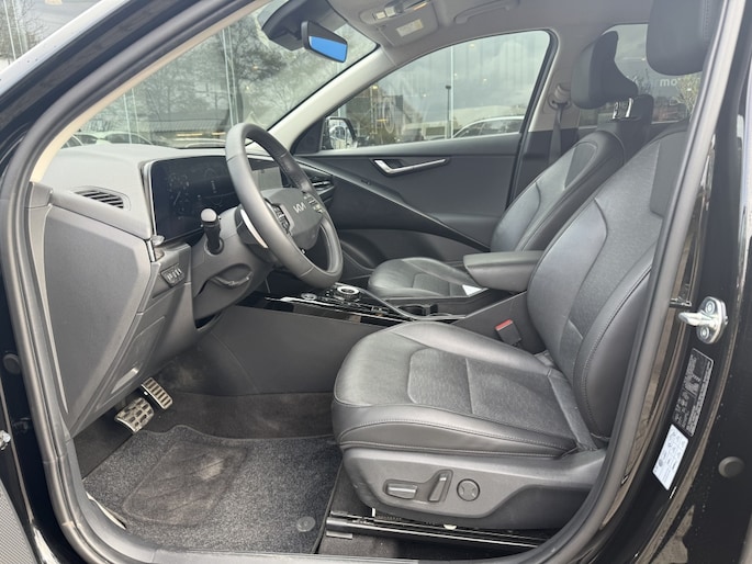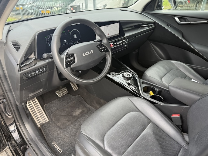 Niet meer zoeken naar je sleutels dankzij het keyless entry systeem, dat ervoor zorgt dat de deuren automatisch ontgrendelen zodra je in de buurt bent. Start de motor met één druk op de knop dankzij keyless start. De kunstlederen bekleding geeft het interieur van de Kia Niro een luxe uitstraling, terwijl de verwarmde stuur je handen warm houdt op koude dagen.