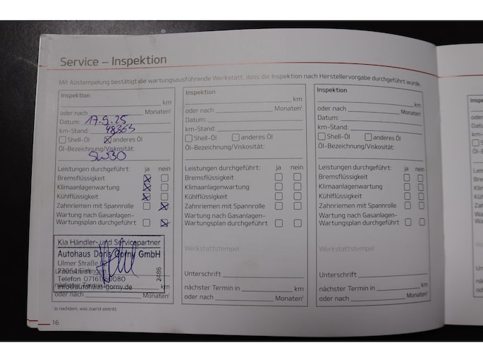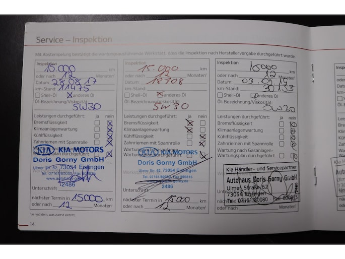 - 27-08-2017 (11.475 km): Onderhoudsbeurt bij Kia Dealer.