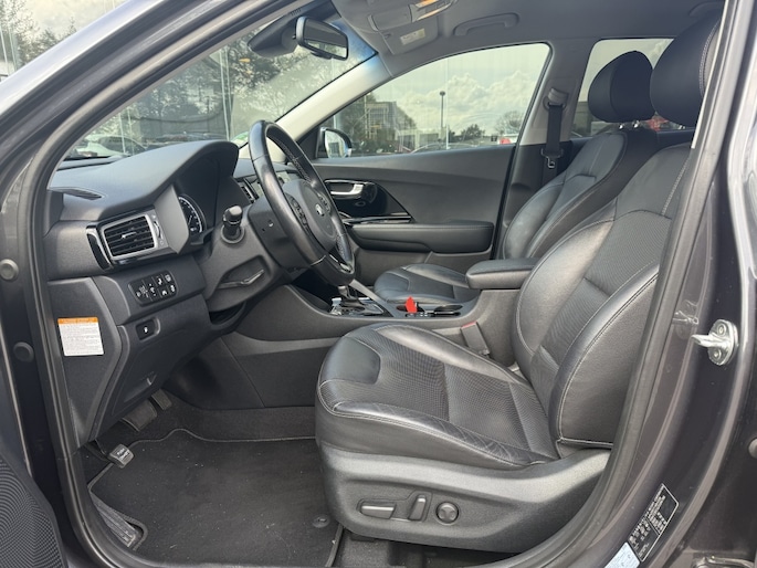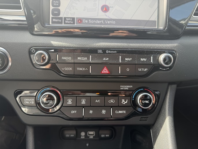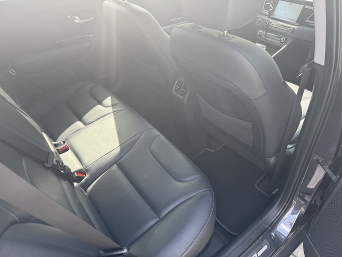 Het interieur van deze Kia Niro is uitgerust met lederen bekleding, wat zorgt voor een luxueuze uitstraling en optimaal comfort. De voorstoelen, achterbank én het stuur zijn verwarmd, zodat je zelfs op de koudste dagen warm en comfortabel onderweg bent. Daarnaast is de bestuurdersstoel elektrisch verstelbaar en voorzien van geheugenfunctie, zodat je altijd in de perfecte positie achter het stuur zit.