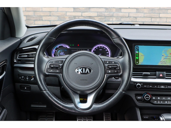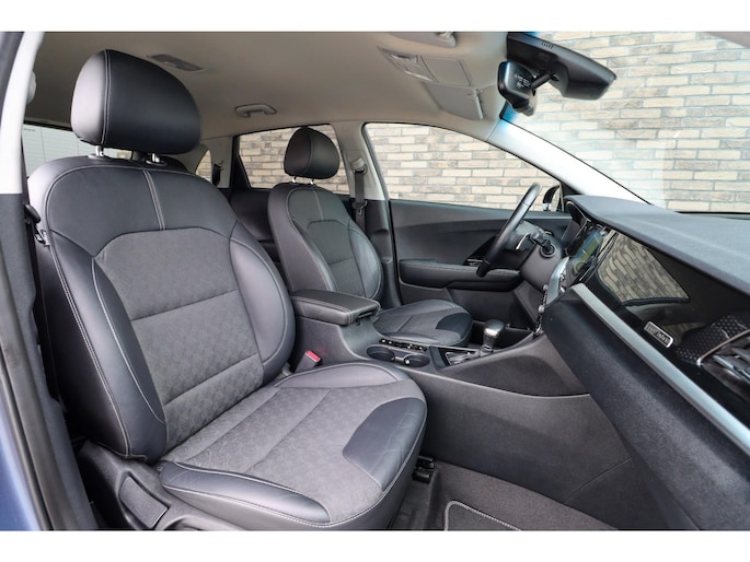 Deze Kia Niro gaat met gemak nog vele, vele, vele tienduizenden kilometers mee. Energiek rijgedrag, fraaie uitstraling en een plezier om in te rijden, deze Kia Niro. Deze Kia Niro is vanwege de hybride motor een echte slimmerd. Want u rijdt zowel op brandstof als elektrisch. En dat scheelt in de kosten! Tijdens gure dagen is het prettig zitten in de verwarmbare voorstoelen. Opwarmen in koude dagen? Pak het verwarmd stuurwiel met beide handen aan! Ook is de auto voorzien van: 18 inch lichtmetalen velgen, halflederen bekleding, LED-dagrijverlichting, extra getint glas, in delen neerklapbare achterbank en LED-achterlichten.