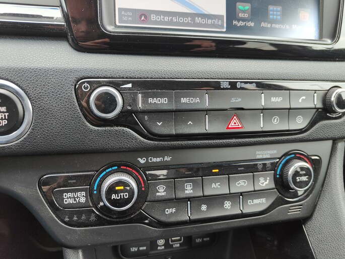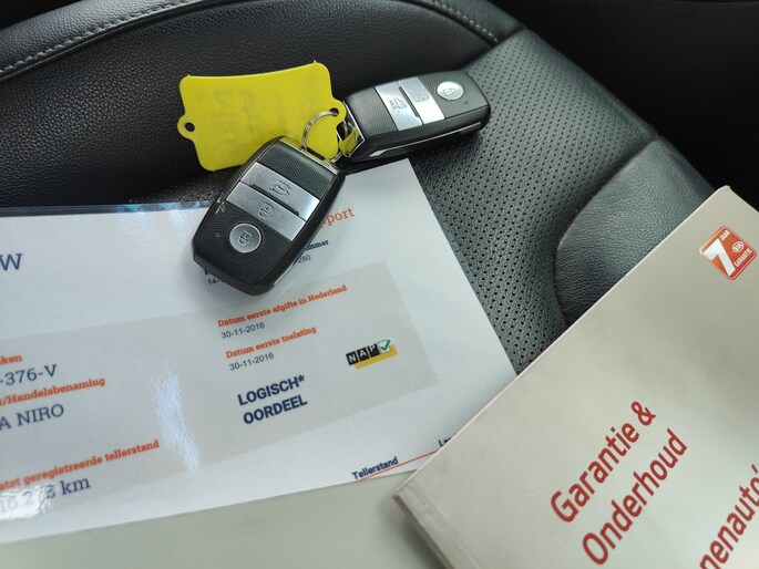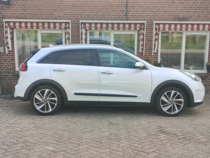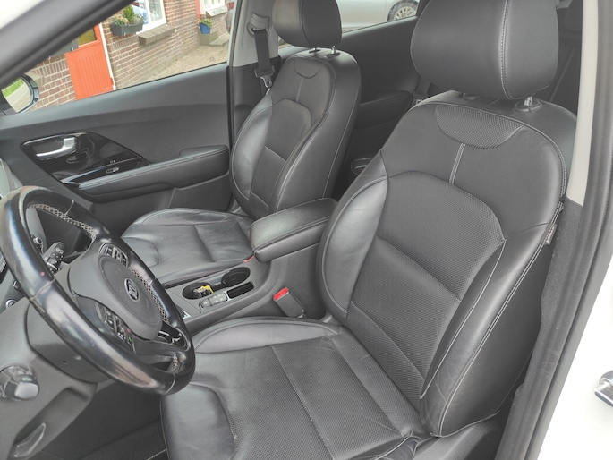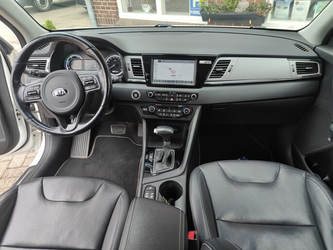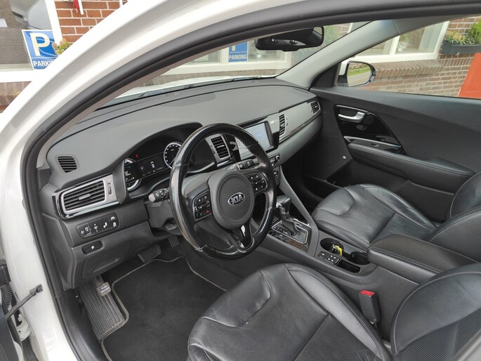 Een auto als de Kia Niro staat garant voor een hoog prestatieniveau en uitstekend comfort. In deze auto vindt u een viercilinder motor en een automatische transmissie. Lederen bekleding is in deze rijk uitgeruste auto ook aanwezig. Hoe koud het buiten ook is, het verwarmbare stuurwiel en de verwarmbare voorstoelen brengen uw handen, vingers en lichaam snel weer op temperatuur. Xenonverlichting zorgt voor een heldere witblauwe lichtkleur en een scherp lichtbeeld. Natuurlijk behoren 18 inch lichtmetalen velgen, extra getint glas en LED-achterlichten ook tot de uitrusting van deze complete auto.