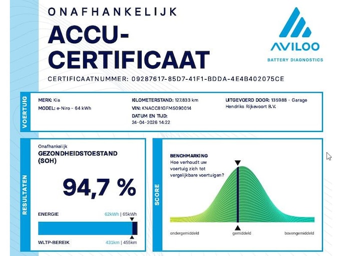 e-Niro DynamicPlusLine 64 kWh | SOH: 94,7% | Schuifdak | Trekhaak | LED | Adaptive CC | Navi | Climate | Leder-Stof |