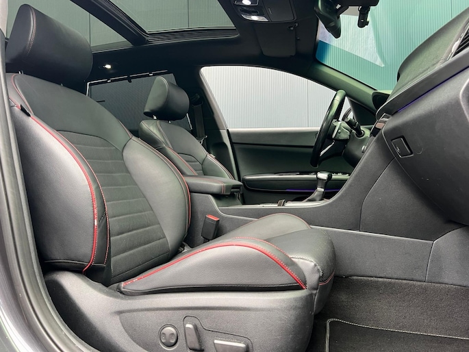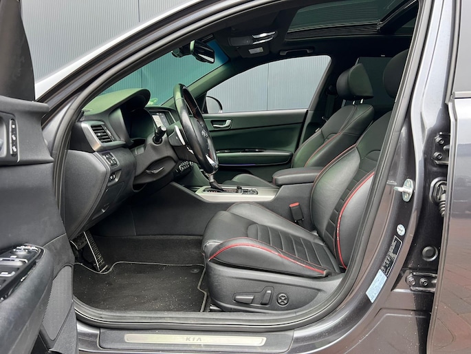 Kia heeft een breed aanbod van modellen in verschillende prijsklassen en is daarmee een topfavoriet. Movement that inspires. Met een viercilinder motor en een automatische transmissie beschikt deze Kia over uitstekende prestaties. De hoogwaardige, lederen bekleding benadrukt de kwaliteit van deze Kia. U zult absoluut de luxe waarderen van de stoelverwarming, verwarmbare achterbank, en het verwarmbare stuur dat inbegrepen is in dit voertuig. De sportstoelen houden u en uw passagier stevig vast tijdens een snelle rit, maar bieden ook altijd comfortabele ondersteuning. Licht en lucht komen onbelemmerd binnen als het elektrisch bediende glazen panoramadak met één druk op de knop wordt geopend. De achterklep opent automatisch met een druk op de knop. Handig als u met volle handen staat. Verder is de Kia uitgerust met: 18 inch lichtmetalen velgen, LED koplampen, warmtewerend glas, in delen neerklapbare achterbank, LED-achterlichten en verstelbare lendensteunen.