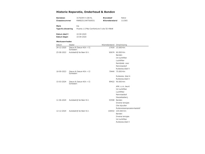 Onderhoudshistorie aanwezig: Ja