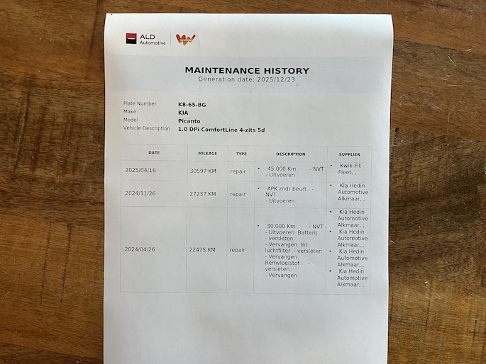 Onderhoudsboekjes: Aanwezig