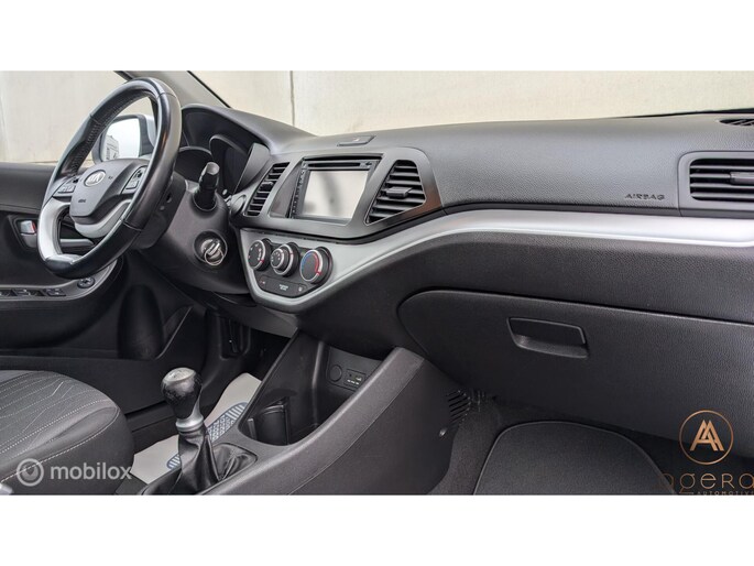 Om te beginnen is het goed om te weten dat de Kia Picanto is gemaakt met 3 of met 5 deuren. Dit betreft de 5 deurs versie, lekker praktisch! De Picanto beschikt verder over centrale deurvergrendeling (met knopjes op de sleutel op afstand bedienbaar, en daar hebben we er 2 van), hij heeft elektrisch verstelbare ramen en spiegels, een goedwerkende airco, de originele autoradio is vervangen door een superdeluxe Pioneer met navigatie, Bluetooth en een mooi groot touchscreen en de Kia heeft een multifunctioneel stuurwiel, dat ook in combinatie met deze nieuwe autoradio perfect werkt. Let bij het vergelijken van Picanto’s ook vooral even op de lampen. Deze Picanto heeft het LED lichtpakket, met de mooie, modern ogende projectors in de koplampen en de LED dagrijverlichting geïntegreerd.