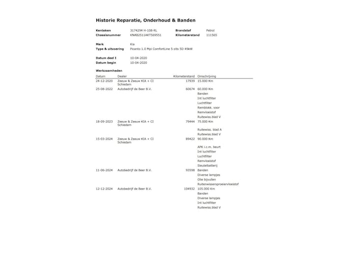 Onderhoudshistorie aanwezig: Ja