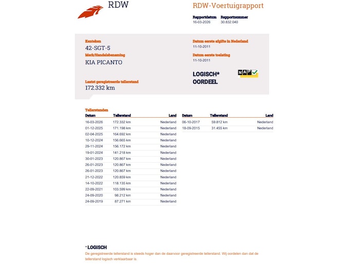 Je bod op Kia Picanto is geplaatst