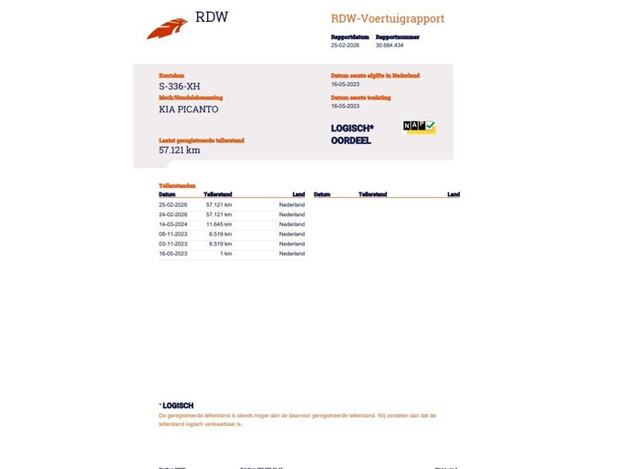 Kilometerstand gecontroleerd