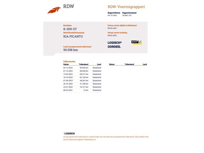 Kilometerstand gecontroleerd