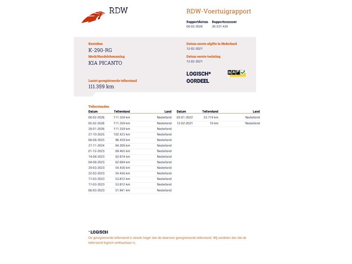 Kilometerstand gecontroleerd