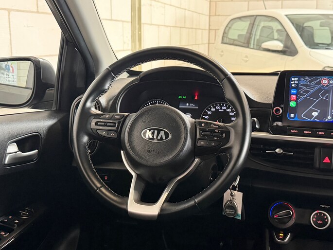 De Picanto is uitgerust met tal van opties waaronder airconditioning, cruise control en multimedia-voorbereiding met spraakbediening. Dankzij de achteruitrijcamera parkeer je moeiteloos, en met Apple Carplay/Android Auto bent u altijd verbonden en kunt u navigeren op uw eigen smartphone. Het moderne interieur is voorzien van zwarte glans accenten en een verstelbaar stuurwiel. Lichtmetalen 14-inch velgen maken het plaatje compleet.