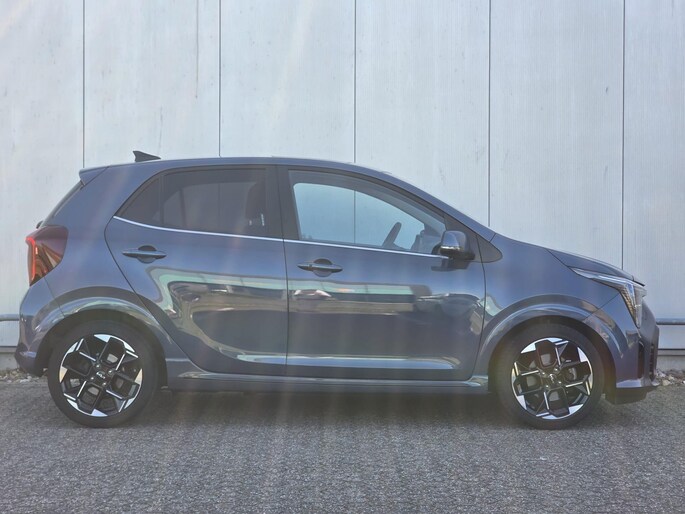 De GT-Line-versie van de Kia Picanto 2025 onderscheidt zich door zijn dynamische en sportieve uitstraling. De agressieve grille, LED-verlichting en opvallende 16-inch lichtmetalen velgen geven de auto een premium uitstraling binnen het A-segment. De GT-Line voegt daarnaast sportieve bumpers en rode accenten toe, waardoor hij zich onderscheidt van de reguliere uitvoeringen