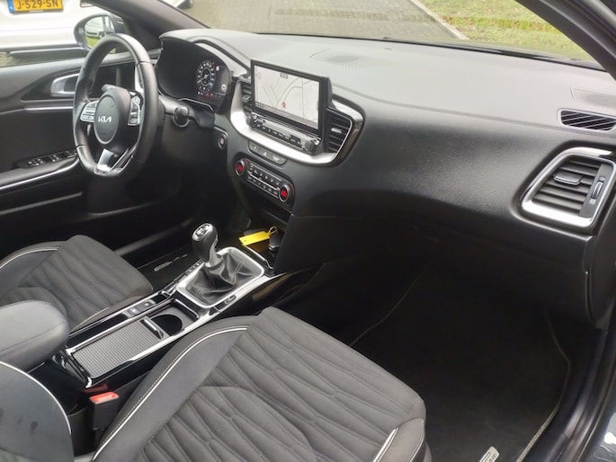 Het eerste wat opvalt aan deze Kia ProCeed is de elegante metallic lak die zijn exterieur siert. De lichtmetalen velgen van 17 inch geven hem een stoere uitstraling en versterken zijn sportieve karakter. Of je nu door de stad manoeuvreert of lange afstanden over de snelweg aflegt, met de cruise control adaptief en stuurhulp wordt elke rit moeiteloos en comfortabel.