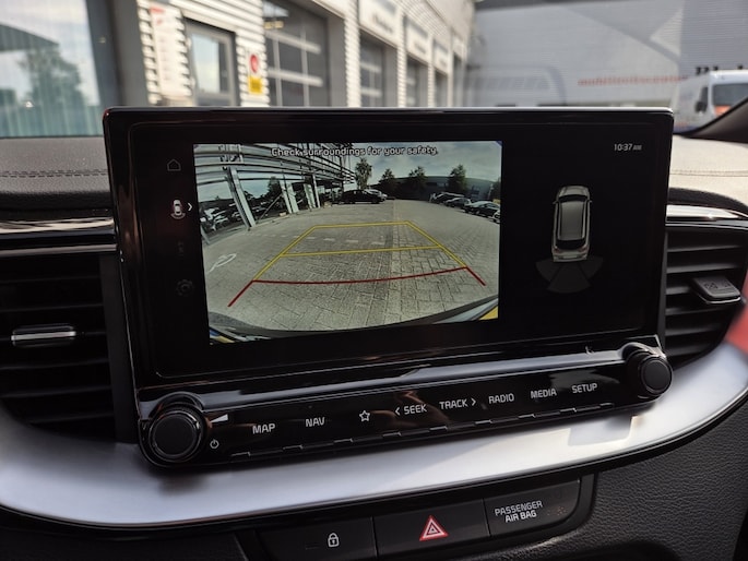 Alle benodigde informatie helder in beeld: het digitale dashboard is een geweldige rijhulp. Zodra u naar de 'R' schakelt, gaat de achteruitrijcamera in werking en heeft u een perfect zicht op alles wat zich achter de auto afspeelt. Adaptive cruise control houdt de ingestelde snelheid vast en houdt automatisch afstand tot uw voorligger. Rijden-stilstaan, rijden-stilstaan. Niks is irritanter en vermoeiender dan filerijden. Daar heeft deze Kia ProCeed een oplossing voor: de file assistent, die met radarmeting permanent het tempo aanpast op de voorligger. Zelfs als die stopt. Waar u zelf ook bent, u staat altijd in contact met de auto via de app op uw smartphone. Zo controleert u uiteenlopende functies, ook op afstand. Met dashboard met spraakbediening, full map navigatiesysteem, kruisend verkeer detectie, electronic climate control, draadloos opladen en DAB ontvangst is deze auto helemaal compleet.