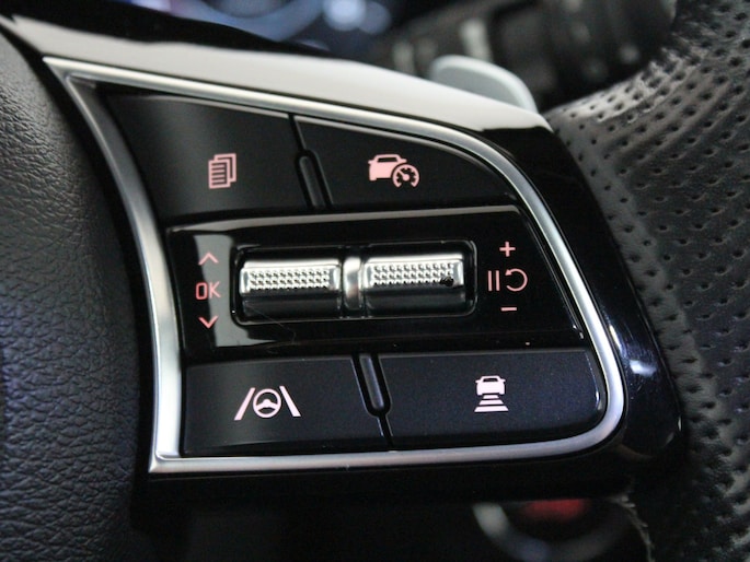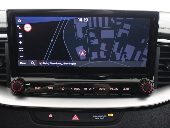 Deze Kia is voorzien van verschillende intelligente veiligheidsvoorzieningen. Ze kijken tijdens het rijden als het ware met u mee, ze signaleren potentieel gevaarlijke situaties en in een aantal gevallen kunnen ze ook ingrijpen. Wat deze auto ook kan, is lezen. Hij 'leest' voor u de verkeersborden tijdens de rit en attendeert u erop door ze op het dashboard te projecteren. Het Lane-keeping systeem zorgt voor een automatisch constante positie binnen de rijstrook. Afdwalen is uitgesloten. Een korte blik over uw schouder bij inhalen of afslaan is niet altijd genoeg. De actieve dodehoekdetectie helpt de veiligheid te vergroten. De auto is ook uitgerust met forward collision warning system, hill hold functie, vermoeidheidsherkenning, autonoom remsysteem en bandenspanningcontrolesysteem.
