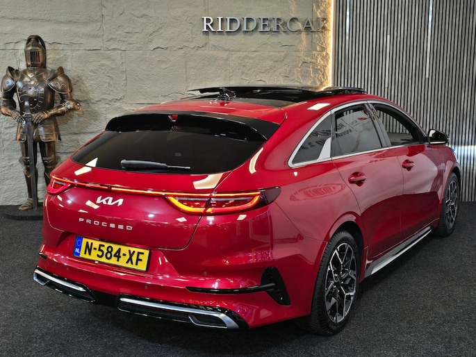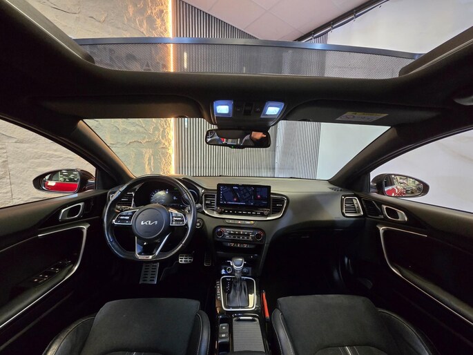 Kia rijden is kiezen voor design, gunstige prijsstelling en veel keuze in modellen. Niet voor niets al jaren in de top-3 van populaire merken. Movement that inspires! De aandrijving van deze Kia wordt verzorgd door een viercilinder motor en een automatische transmissie. Basisuitvoering? Niks daarvan! Deze komt met lederen interieur, een elektrisch bediende glazen panorama dak en een elektrisch bedienbare achterklep. De meegeleverde stoelverwarming zorgt in no time voor een behaaglijk gevoel als het buiten koud is. Deze Kia ProCeed heeft een verwarmd stuurwiel. Nooit meer koude handen onderweg. Ook 17 inch lichtmetalen velgen, LED koplampen, extra getint glas, in delen neerklapbare achterbank, LED-achterlichten en verstelbare lendensteunen horen tot de voorzieningen op deze auto.