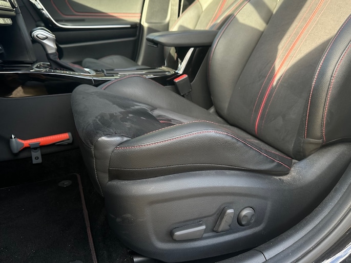 - Rode stiksels in stoelen, stuurwiel, versnellingspookhoes, deurpanelen