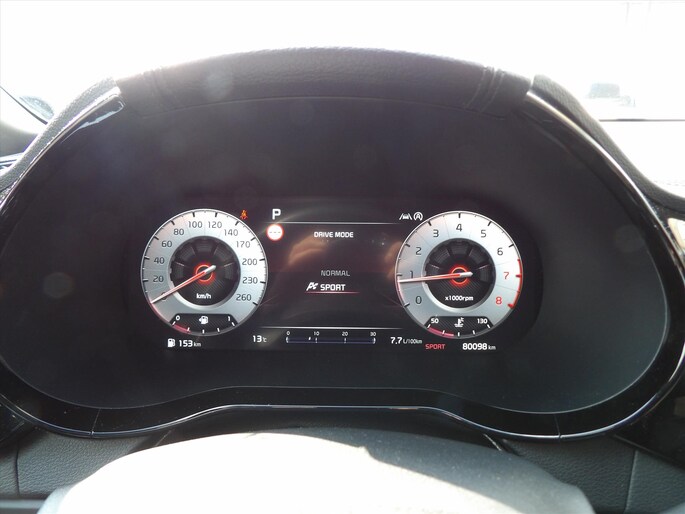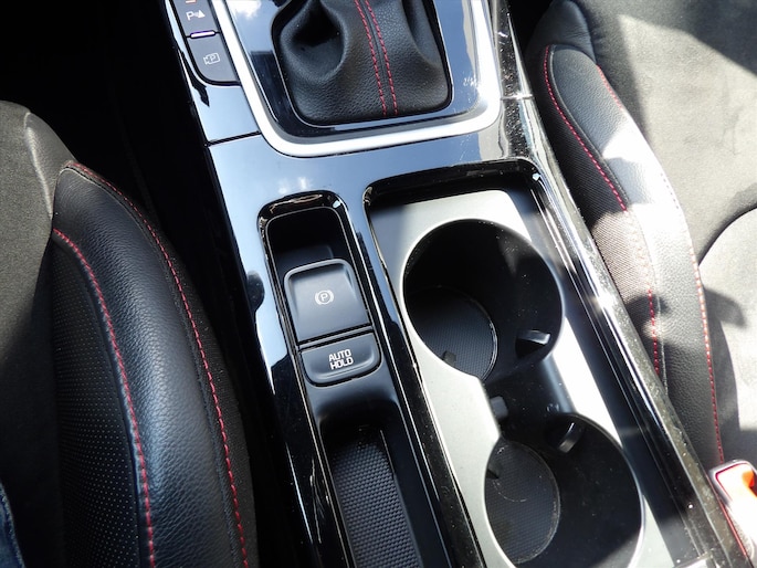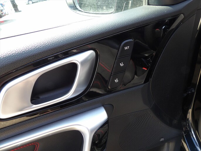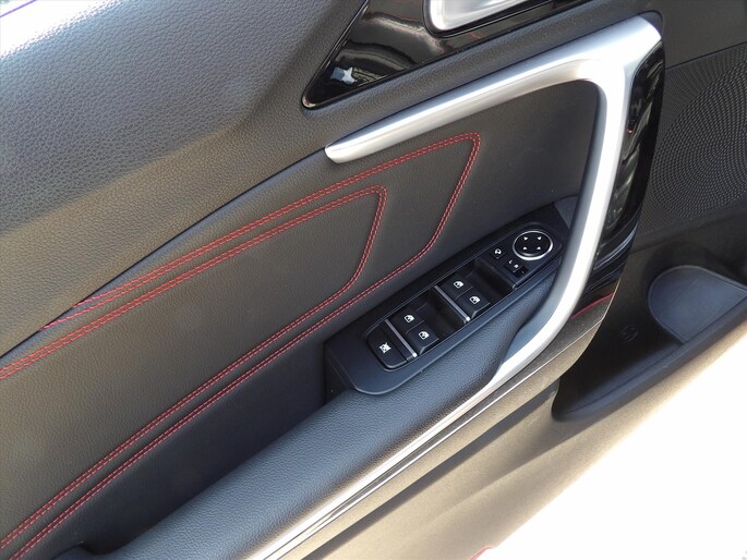 - Rode stiksels in stoelen, stuurwiel, versnellingspookhoes, deurpanelen