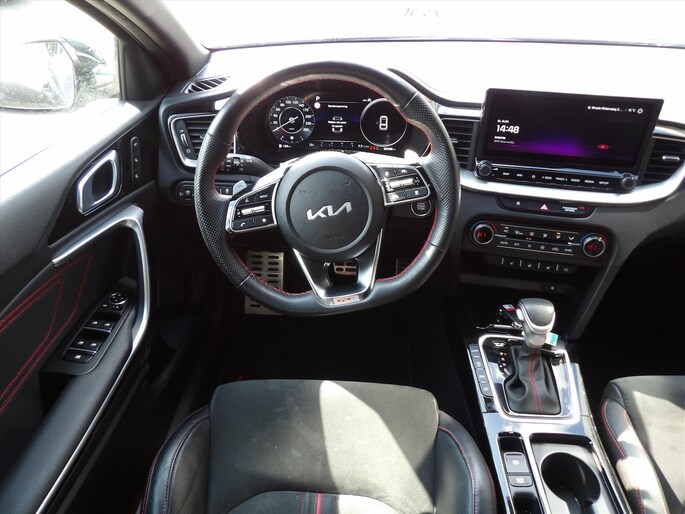 - Bekleding Suède met rode stiksels en GT logo