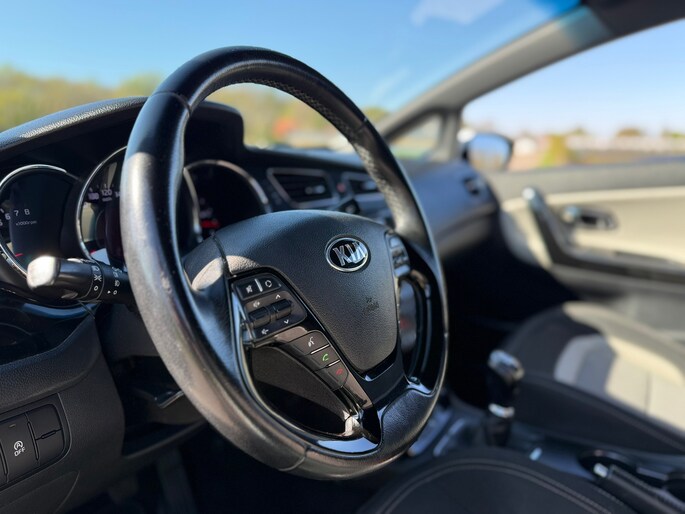 U rijdt gemakkelijk, comfortabel en zonder zorgen met deze Kia Pro_cee'd. Deze auto is uitgerust met een viercilinder motor en een handgeschakelde versnellingsbak. In deze auto profiteert u onder andere ook van: LED-dagrijverlichting, verstelbare lendensteunen en snelheidsafhankelijke stuurbekrachtiging.