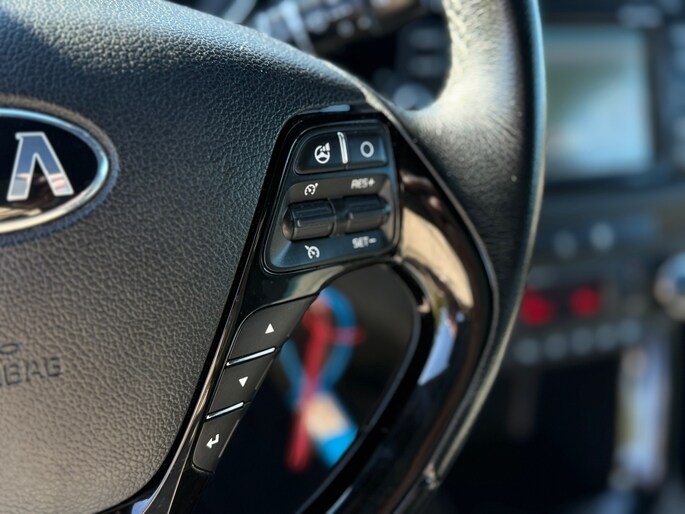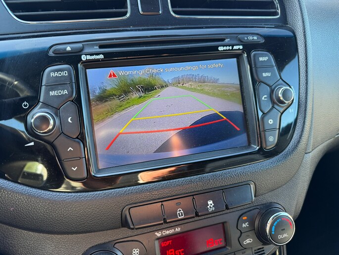 Kom maar, kom maar, kom maar... ho! Prettig hoor, zo'n achteruitrijcamera. De kortste weg, de zuinigste weg, de snelste weg... elke weg is te vinden met het navigatiesysteem. Natuurlijk is er ook electronic climate control aanwezig. Gemak en veiligheid gaan prachtig samen. Bijvoorbeeld door de audiobediening op het stuur. De elektronische systemen in deze Kia helpen u actief om comfortabeler te rijden. Een automatisch inschakelbare verlichting en een regensensor houden de omstandigheden onderweg in de gaten. Ook is de Kia uitgerust met: cruise control, automatisch dimmende binnenspiegel, lederen stuur en centrale deurvergrendeling met afstandsbediening.
