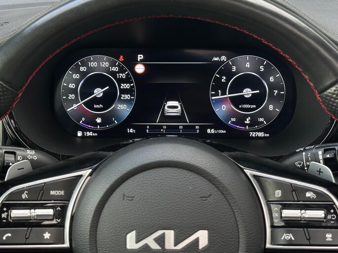 - Rode stiksels in stoelen, stuurwiel, versnellingspookhoes, deurpanelen