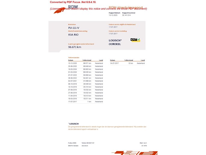Kilometerstand gecontroleerd