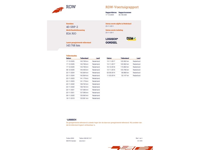 | Wegenbelasting/3mnd | € 119 - € 129 |