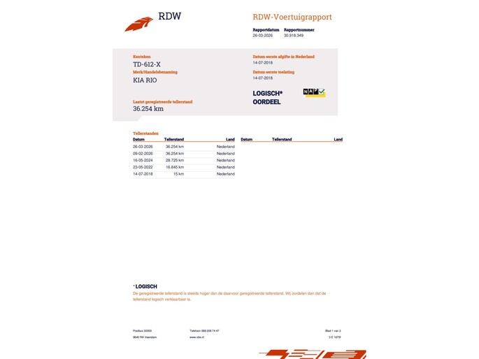 Kilometerstand gecontroleerd