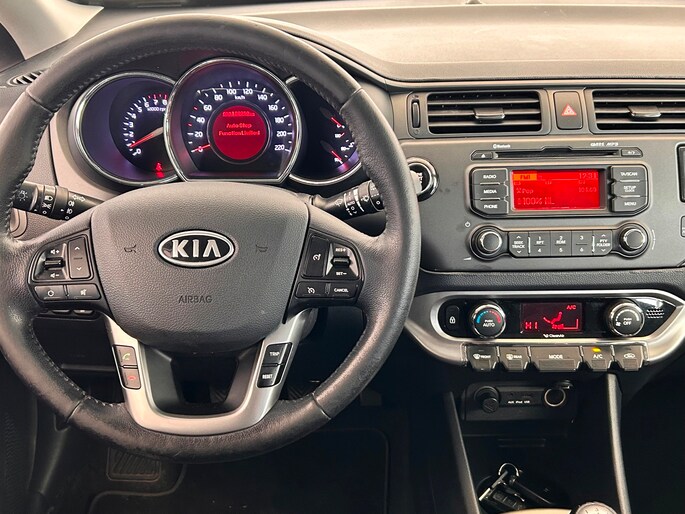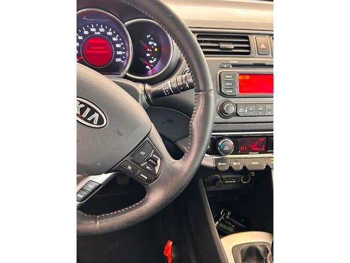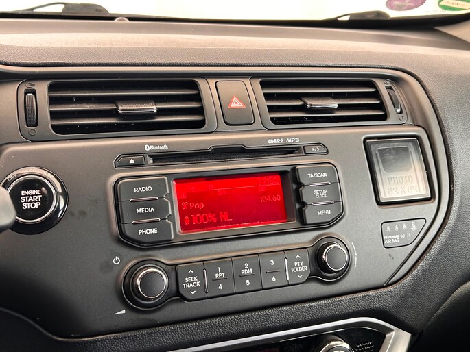 Het bedienen van het audiosysteem vanaf het stuurwiel helpt u om gefocust te blijven op de weg. De auto is ook uitgevoerd met electronic climate control. Parkeerplekken worden er niet ruimer op. Maar met de aanwezige parkeersensoren krijgt u deze Kia Rio zonder problemen op z'n plaats. De automatisch inschakelbare verlichting en regensensor zorgen dat onderweg automatisch de verlichting en de ruitenwissers worden ingeschakeld. Daarmee nemen ze u veel werk uit handen. Voorzien van cruise control, dus vriendelijk voor de inzittenden én de benzinetank. De Kia is standaard voorzien van: keyless entry, lederen stuur, centrale deurvergrendeling met afstandsbediening en boordcomputer.