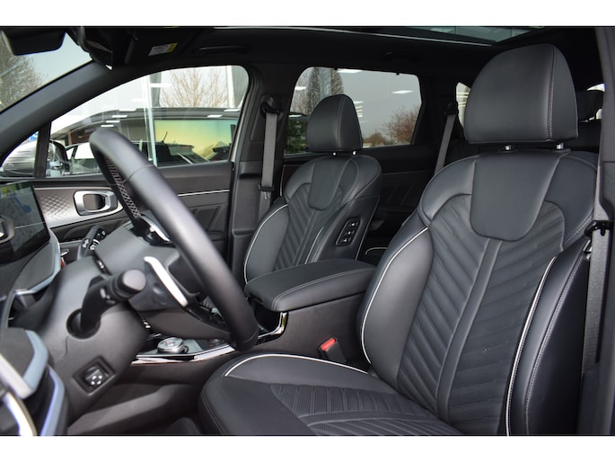 Ruime en complete Sorento 1.6 T-GDi Plug- in Hybrid 265pk DCT6-Autom. 5-Zits o.a. voorzien van Hoge instap, ECC-Airco, Cruise control Adaptief, Navigatie, Achteruitrijcamera, Bluetooth, Bose Sound system, Leder met Stoelverwarming + Ventilatie, Stuurverwarming, Electrisch Panorama Schuif/kanteldak, Electrisch verstelbare stoel met Memory, Privacy glas, Keyless Entry met start/stop-button, Led verlichting, 19" LMV, Parkeersensoren voor + achter en Tot 10 Jr. Kia-Garantie t/m 04-07-2035.