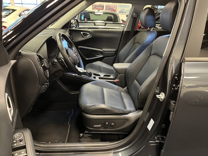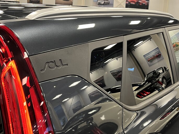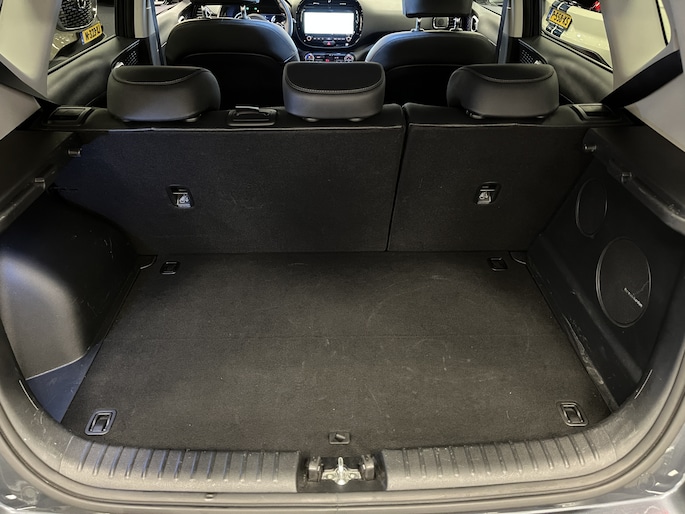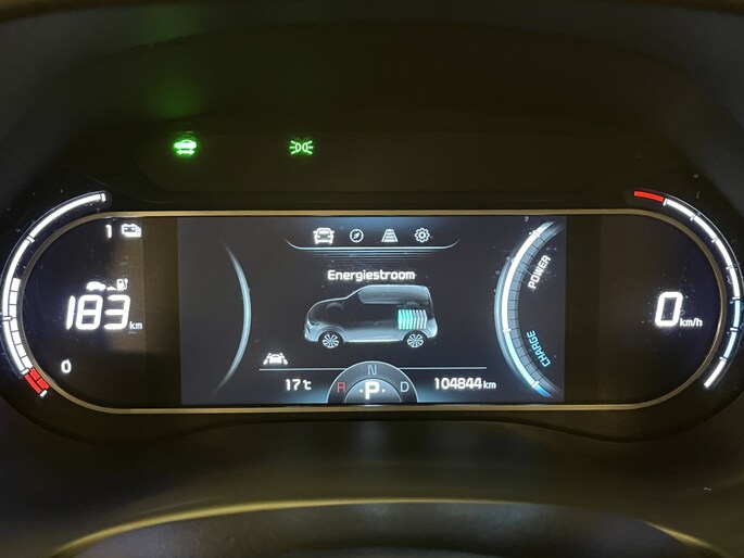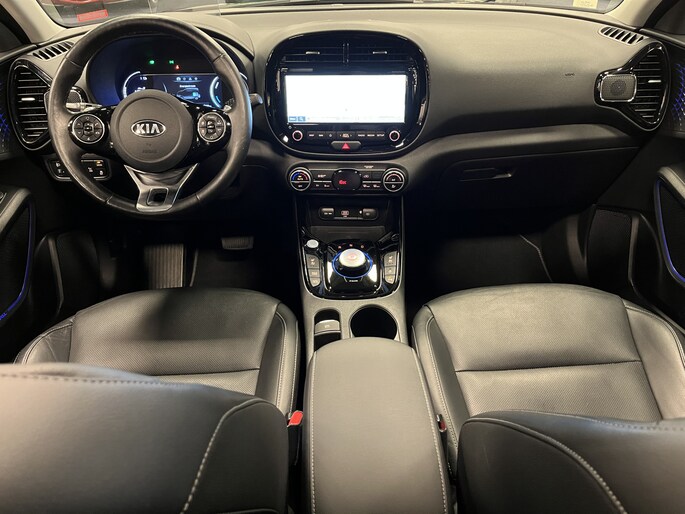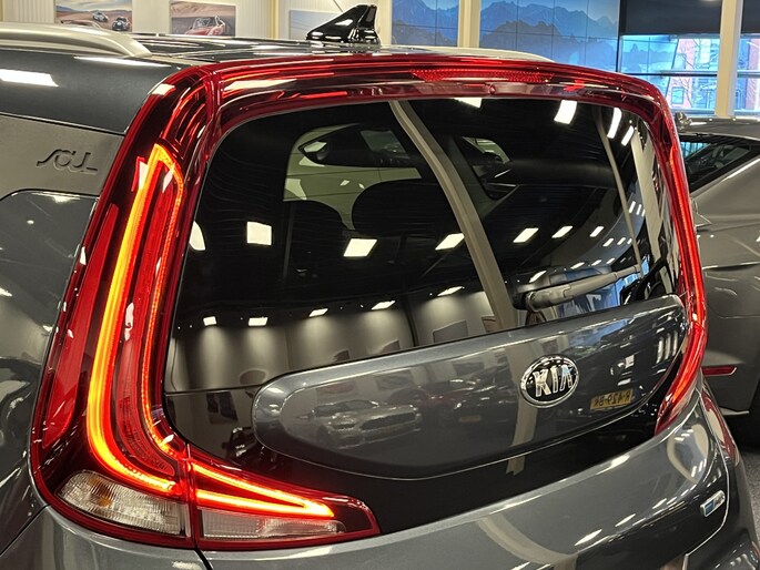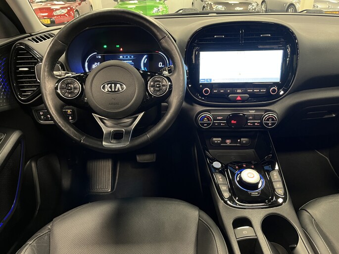 In plaats van een conventionele versnellingspook heeft de Kia e-Soul een gripvaste draaiknop, een elektronische parkeerrem en een speciaal 7” EV-infodisplay in het instrumentenpaneel. Tijdens het opladen toont een controlelampje bovenin het dashboard de laadstatus. Zo kun je al van buitenaf zien of de accu’s helemaal vol zijn.