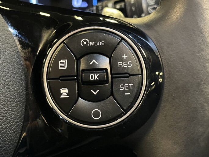 Met behulp van een camera en radarsensoren regelt de adaptieve cruise control de snelheid en de volgafstand tot je voorliggers. Het systeem handhaaft een veilige ingestelde afstand en past zo nodig de eigen snelheid aan. Remt de voorligger af, dan vertraagt ook de e-Soul, zo nodig zelfs helemaal tot stilstand. Versnelt de voorligger, dan versnelt ook de e-Soul tot de vooraf ingestelde maximum snelheid. Een ideale feature, met name in druk spitsverkeer.