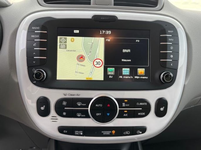 Afstand schatten bij het achteruitrijden? Niet nodig. U weet het precies, dankzij de achteruitrijcamera. Onderweg kunt u veilig genieten van het audio-installatie met CD-speler en het navigatiesysteem. Want in deze Kia bedient u ze vanaf het stuurwiel. Met automatische airconditioning hoeft u alleen de gewenste temperatuur in te stellen. Het systeem doet de rest. U bedient de cruise control eenvoudig zonder uw handen van het stuur te halen. Met keyless entry stapt u in zonder dat u de sleutel uit uw jas of tas hoeft te halen. Natuurlijk behoren automatisch dimmende binnenspiegel en centrale deurvergrendeling met afstandsbediening ook tot de uitrusting van deze complete auto.