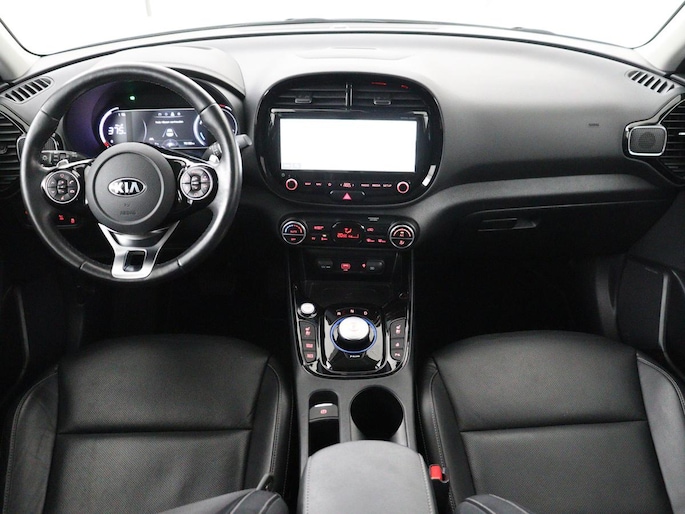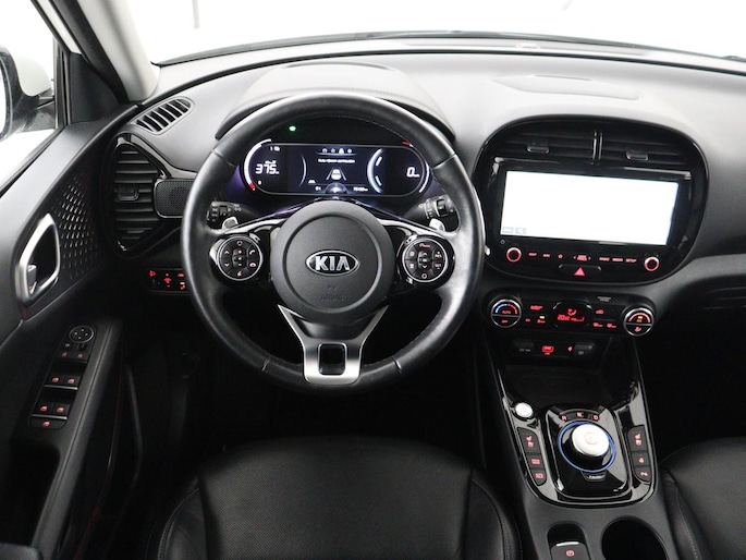 De nieuwste veiligheidssystemen komen in deze Kia e-Soul samen. Indien u onbedoeld de rijstrook lijkt te verlaten, reageert het Lane-keeping systeem meteen en corrigeert. Het forward collision warning-systeem is constant alert en detecteert via sensor de afstand tot voorliggers. Wordt die te klein, dan volgt een automatische waarschuwing. Bovenop deze veiligheidsfeatures heeft deze Kia bovendien head-up display, dodehoekdetectie, hill hold functie, autonoom remsysteem en bandenspanningcontrolesysteem.