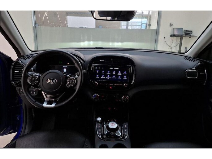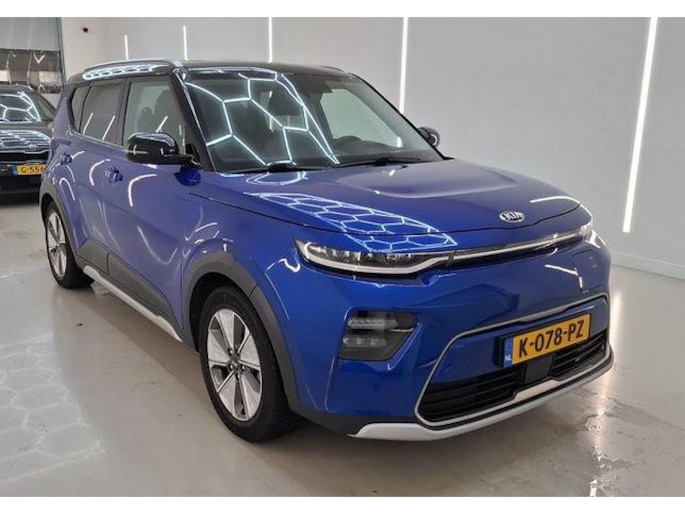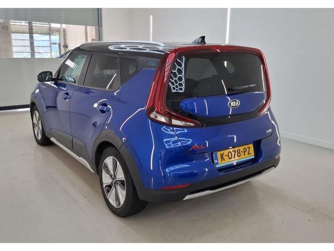 Deze blauw metallic KIA Soul met het grote accupakket, 64kwh, is uitgerust met het luxe executive optiepakket.