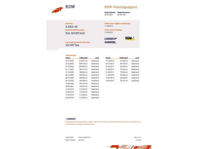 Kilometerstand gecontroleerd
