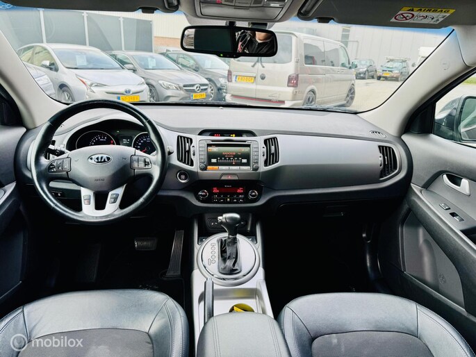 Dit is een auto die is ontworpen voor uw comfort. Deze Kia Sportage is van het bouwjaar 2015. Hij heeft een benzinemotor en een automatische transmissie. Voorin is het 's winters genieten met de verwarmbare voorstoelen voor zowel bestuurder als bijrijder. Het panoramadak zorgt voor maximale lichtinval en kan worden geopend voor extra ventilatie. Ook 17 inch lichtmetalen velgen, halflederen bekleding, LED-dagrijverlichting, donker getint glas achter en verstelbare lendensteunen zijn aan boord.