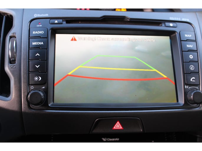 De achteruitrijcamera geeft u duidelijk zicht op de ruimte achter de auto. De bediening van het audiosysteem en het navigatiesysteem gebeurt met knoppen op het stuur. Electronic climate control verwarmt of koelt het interieur met een druk op de knop. De regensensor in de voorruit schakelt de ruitenwissers automatisch in en uit. Met cruise control rijdt u rustiger en meer ontspannen, en bovendien zuiniger. Deze Kia is voorzien van keyless entry, automatisch dimmende binnenspiegel, lederen stuur en centrale deurvergrendeling met afstandsbediening.