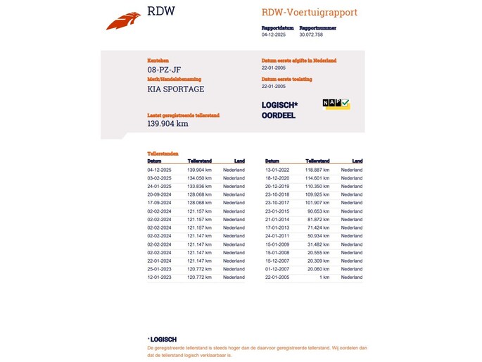 Kilometerstand gecontroleerd