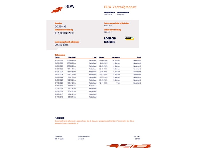 Kilometerstand gecontroleerd