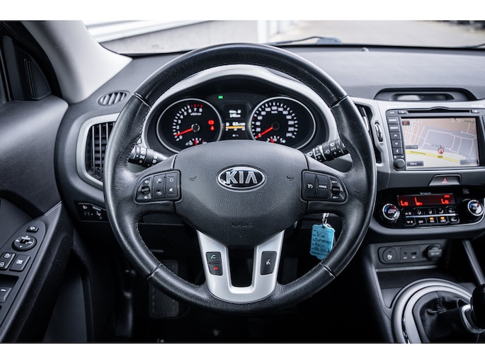 Koreaanse auto's blijven waardevast. Vraag maar aan de Consumentenbond. De benzinemotor van deze Kia is niet alleen zuinig, maar ook bijzonder prestatiegericht. Ook 17 inch lichtmetalen velgen, LED-dagrijverlichting en verstelbare lendensteunen horen tot de voorzieningen op deze auto. Nekkramp en verdraaide schouders zijn verleden tijd. Door de achteruitrijcamera is iedere meter achter de auto glashelder in beeld. Van A naar B zonder omwegen: altijd uw eigen navigatiesysteem aan boord! Met electronic climate control hoeft u alleen de gewenste temperatuur in te stellen. Het systeem doet de rest. Alle audiofuncties zitten onder uw vingertoppen door de audiobediening op het stuur. Altijd goed zicht dankzij de regensensor, onder alle weersomstandigheden. Ook cruise control, automatisch dimmende binnenspiegel, lederen stuur en versnellingspook en centrale deurvergrendeling met afstandsbediening horen tot de voorzieningen op deze auto. In de Kia Sportage heeft uw veiligheid en die van uw omgeving prioriteit. Op een helling houdt hill hold control de handrem vast totdat u weer gas geeft. Indien u interesse heeft in deze Kia, zetten we hem graag klaar voor een proefrit. We horen graag van u, mailt of belt u ons meteen?