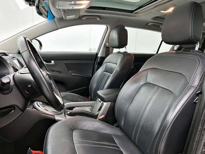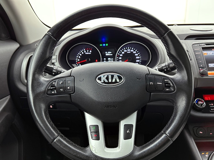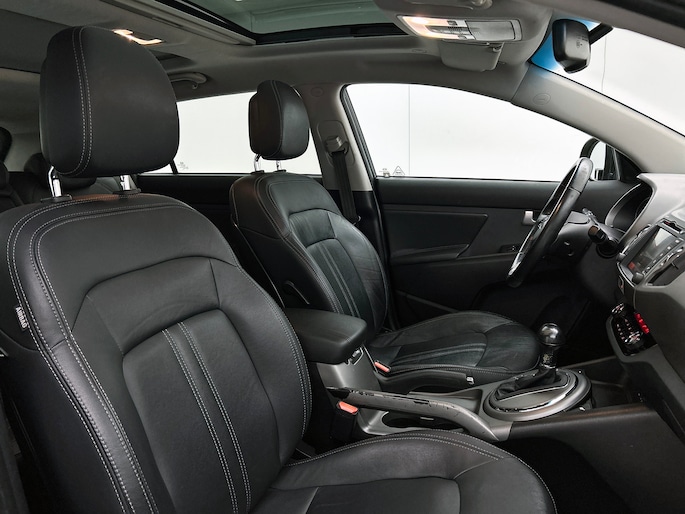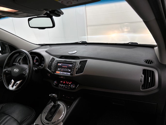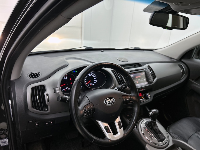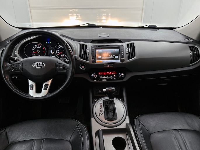 Met een auto als deze Kia Sportage komt u absoluut goed voor de dag. De aandrijving komt voor rekening van een benzinemotor en een automatische transmissie. Het interieur ademt luxe door de leren bekleding. 's Winters komen de verwarmbare voorstoelen heerlijk van pas. Dankzij het elektrisch bediende glazen panoramadak lijkt het of u altijd met open dak rijdt. Xenonverlichting zorgt in het donker voor beter zicht. Ook 18 inch lichtmetalen velgen, LED-dagrijverlichting, donker getint glas achter en verstelbare lendensteunen zijn aan boord.