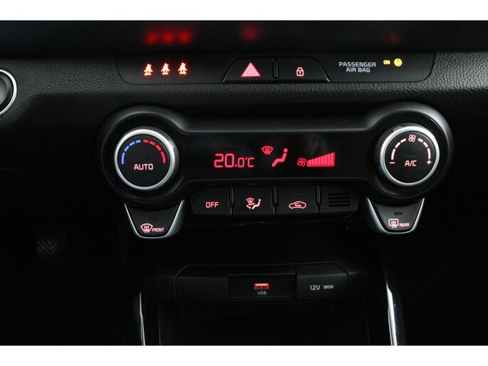 De indeling van het digitale dashboard is zo ingericht dat u met één blik precies weet wat u weten wilt. Omdat u nou eenmaal geen ogen in uw achterhoofd heeft, is het altijd lastig om achteruit te rijden zonder brokken te maken. De achteruitrijcamera lost dat probleem op. Kilometerstand? Oliepeil? Accuspanning? Allemaal te zien via de app. Overal. Altijd. Dankzij Connected Services. Een belangrijke veiligheidsvoorziening is de bediening van het audiosysteem en het full map navigatiesysteem via knoppen op het stuur. Dab-ontvangst geeft daarbij een kraakheldere ontvangst. Dankzij electronic climate control is het interieur behaaglijk warm of verfrissend koel. Deze Kia is voorzien van regensensor, cruise control, keyless entry, automatisch dimmende binnenspiegel en verstelbaar stuur.