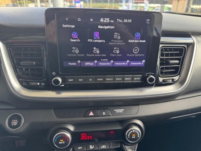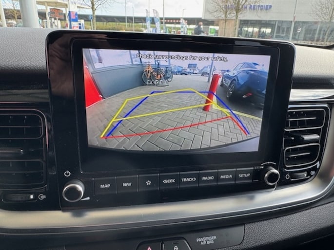 Nooit meer parkeerschade dankzij de achteruitrijcamera. De bediening van het audiosysteem en het full map navigatiesysteem gebeurt met knoppen op het stuur. De audio is overigens voorzien van DAB-radio voor een altijd heldere ontvangst. Met electronic climate control hoeft u alleen de gewenste temperatuur in te stellen. Het systeem doet de rest. Achter het stuur van deze Kia bent u niet alleen. De auto kijkt als het ware met u mee tijdens de rit. De regensensor schakelt de ruitenwissers in als het nodig is en de automatisch inschakelbare verlichting doet de lichten voor u aan. Nooit meer last van een slapende rechtervoet dankzij de uitgekiende cruise control! Wat u ook in deze auto kunt vinden zijn keyless entry, automatisch dimmende binnenspiegel en verstelbaar stuur.
