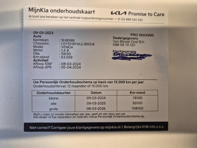 Kilometerstand gecontroleerd